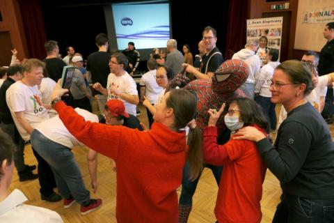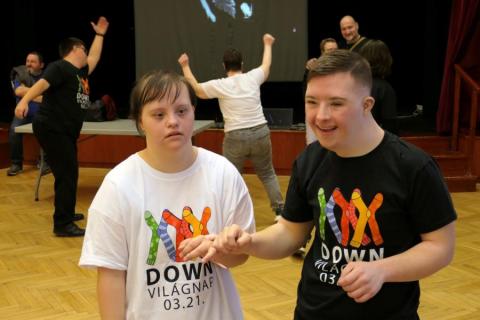 Változatos programmal, több helyszínen ünnepelte alapítványunk ebben az évben is a Down-szindróma Világnapját. Színes programokkal készültek alapítványunk intézményei és lakóotthonai március 21-én. A központi zenés programnak a Pestújhegyi Közösségi Ház adott otthont, ahová az alapítvány intézményeiből csaknem száz ügyfél látogatott el a kísérőkkel. Az érkező vendégeket büféasztal fogadta a Fornetti támogatásának köszönhetően, édes-sós aprósütemények, kávé és ásványvíz várta a vendégeket. A programot tízórai kezdettel Dr. Gruiz Katalin, az alapítvány elnökének ünnepi megnyitója után az ügyfelek nagy kedvence, Várkonyi Attila, DJ Dominique indította, aki fergeteges diszkóhangulatot varázsolt a helyszínre. A színházterem teljesen megtelt az ünneplőkkel, akik remek hangulatban mulattak a felcsendülő, népszerű zeneszámokra. Az eseményre, az ügyfelek meglepetésére ellátogatott az ismert Tik-Tok sztár, a Barátságos Pókember is, aki együtt mulatott táncolókkal, és természetesen a közös szelfik sem maradtak el.