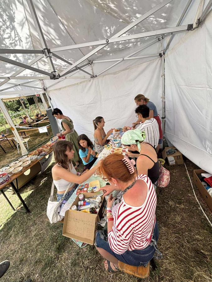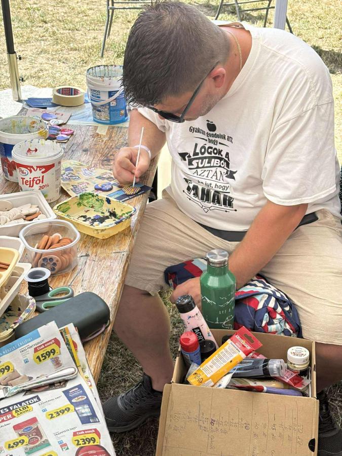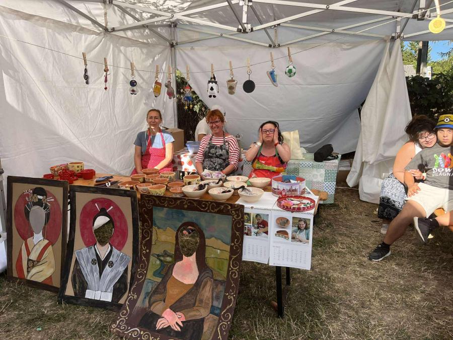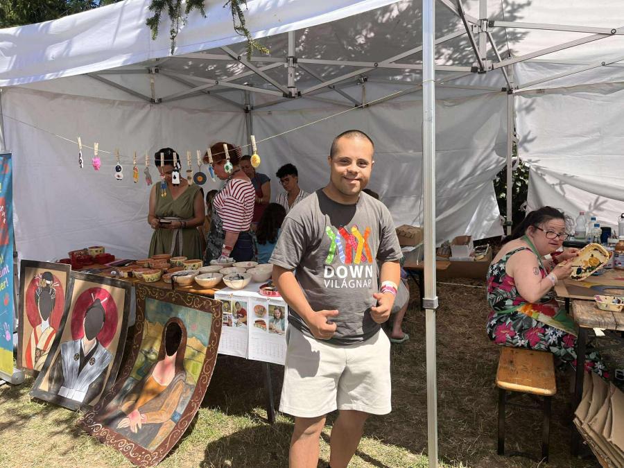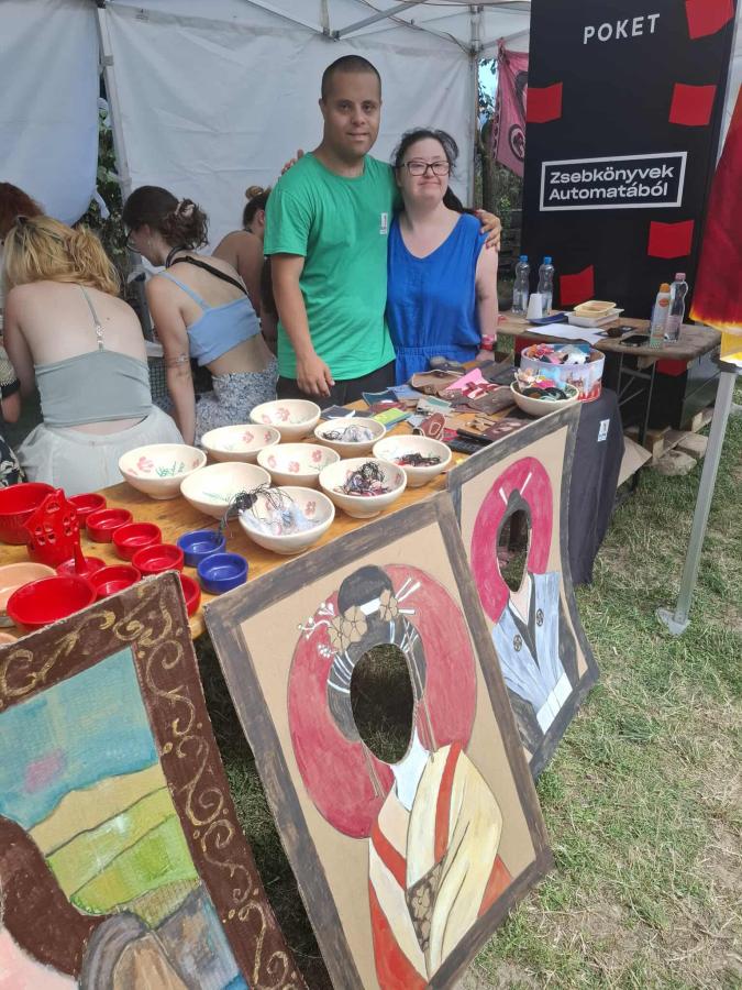 A Művészetek Völgyében tartott kézműves foglalkozásokat és vásárt a Down Alapítvány. Vigántpetenden a Pocket udvar adott lehetőséget a néhány napos kitelepülésre. Down-szindrómás ügyfeleink, akik nem mellesleg aktív tagjai a Fotóterápiás Művészeti Műhelyünknek is, bemutatták a látogatóknak azokat a munkafolyamatokat, amiket nap mint nap a foglalkoztatóban végeznek. Dávid a Lágymányosi Foglalkoztató Centrumban dolgozik, Judó pedig a Bocskai útiban. Mindketten aktívan vették ki a részüket a munkából, a völgy látogatóit szeretettel fogadták sátrunknál. Segítségükkel készíthettek maguknak nemezelt szappant, festhettek kerámia nyakláncot, vagy akár szélcsengőt is, könyvjelzőt. A foglalkoztatók gyönyörű termékei közül is jó sokan vásároltak. Este zárás után és nyitás előtti órákban nem maradhattunk le a kulturális programokról se.
