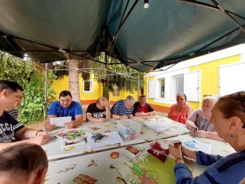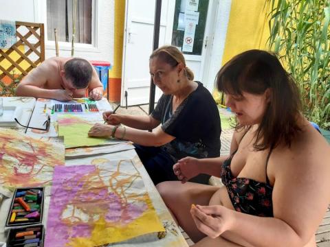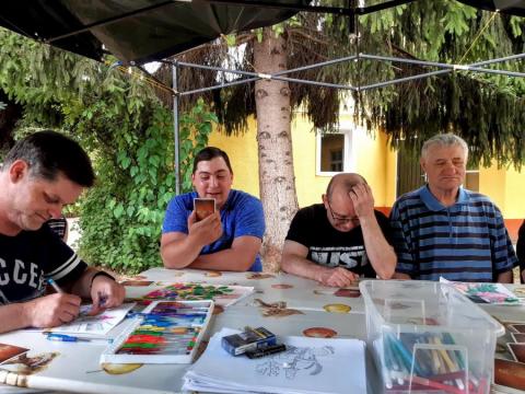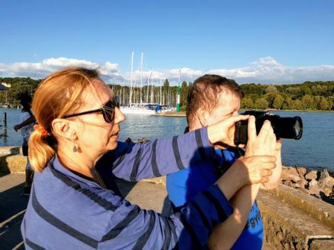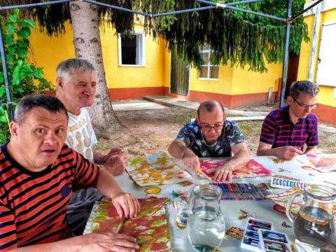 Meglátogattuk a Csengerys fiúkat a Balatonon Pihenésük közben fotó és művészetterápiás foglalkozást tartottunk nekik. Nagyon kedvesen fogadtak minket, és meg kell hogy mondjam, csodálatosan fotóztak és alkottak is. Jó hangulatú foglalkozásainkhoz amikor tehették, a gondozók, Brigi és Évike is csatlakoztak.