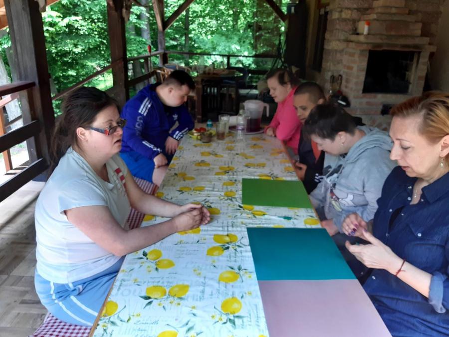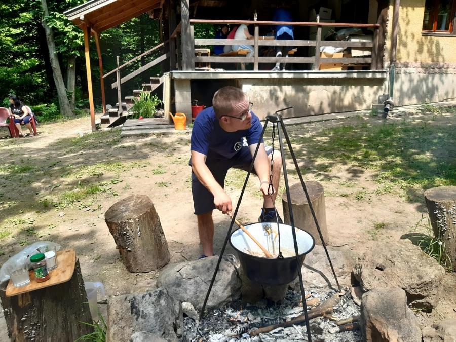 Csodás négy napot töltöttünk a Down Alapítvány nyaralójában Dobogókőn a Fotóterápiás Művészeti Műhely kis csapatával. Volt mit fotózni kirándulás közben, bármerre indultunk gyönyörű hegyvonulatok zölldelltek. Művészeti foglalkozásunkon ezt a panorámát dolgoztuk ki. Borrácsban főztünk ebédet, Pepe volt a főszakács. Este a szalonnasütésünket kicsit megzavarta az eső de sebaj, a jókedvünket nem rontotta el. Júliusban a csapat másik felével táborozunk