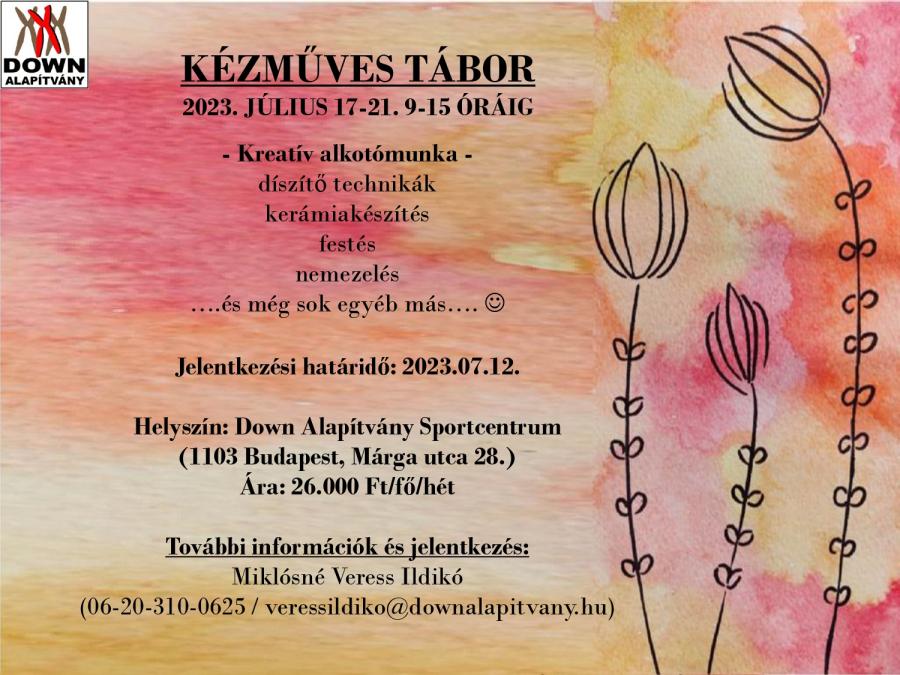 A Down Alapítvány idén nyáron is több táborba várja az érdeklődőket. Öt napos napközis táborainkra bárki jelentkezhet, családban élők, iskolások, más szervezetekhez tartozók. Elsősorban enyhe-, és középsúlyos értelmi fogyatékos fiataloknak, felnőtteknek ajánljuk (14-99 éves korig).
